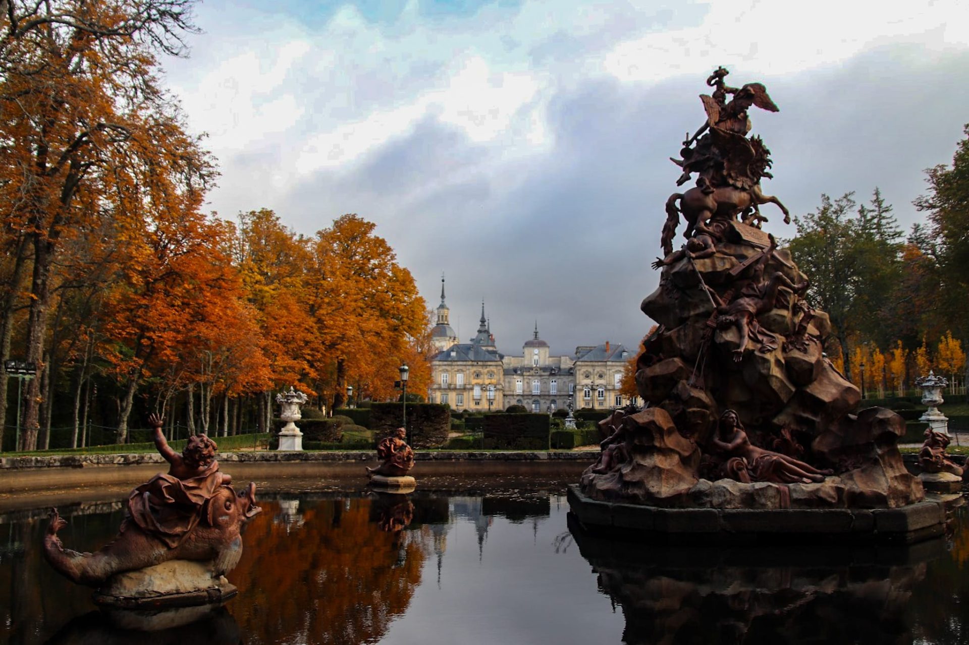 Pues bien, el Palacio Real de La Granja es una joya de la arquitectura barroca, sus fachadas, aunque sobrias, esconden en su interior un despliegue de salones y estancias ricamente decoradas, con frescos que parecen cobrar vida, pero lo que realmente te roba el aliento son sus jardines y fue la razón que nos atrajo hasta aquí.