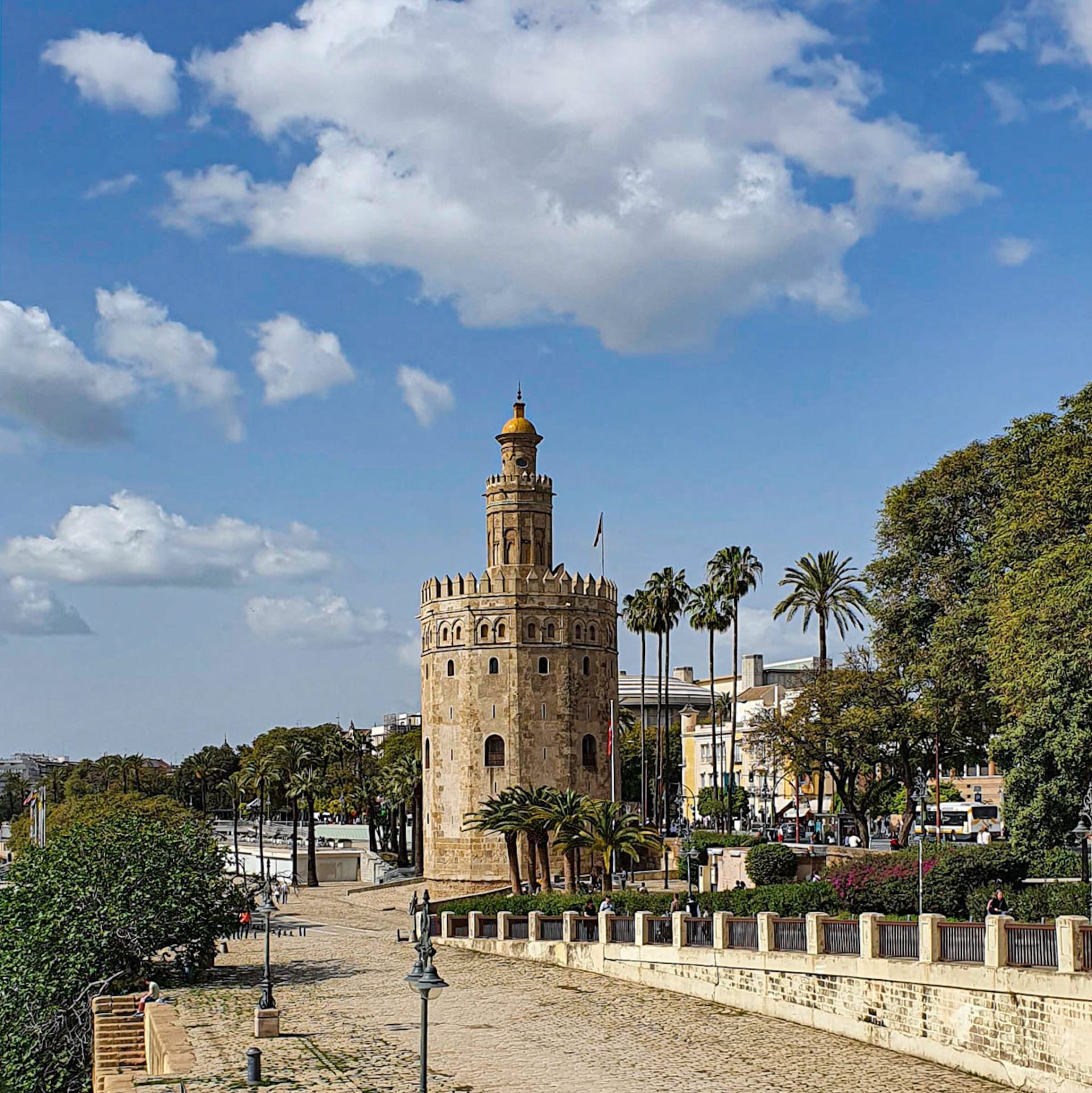 De vuelta al centro visitamos la Torre del Oro, donde actualmente se encuentra el Museo Marítimo de Sevilla y podrás ver diversos objetos náuticos y maquetas de barcos. Esta bonita torre situada a la orilla del Guadalquivir rivaliza con La Giralda por ser la torre más famosa de Sevilla, pero en esta la visita es gratuita.