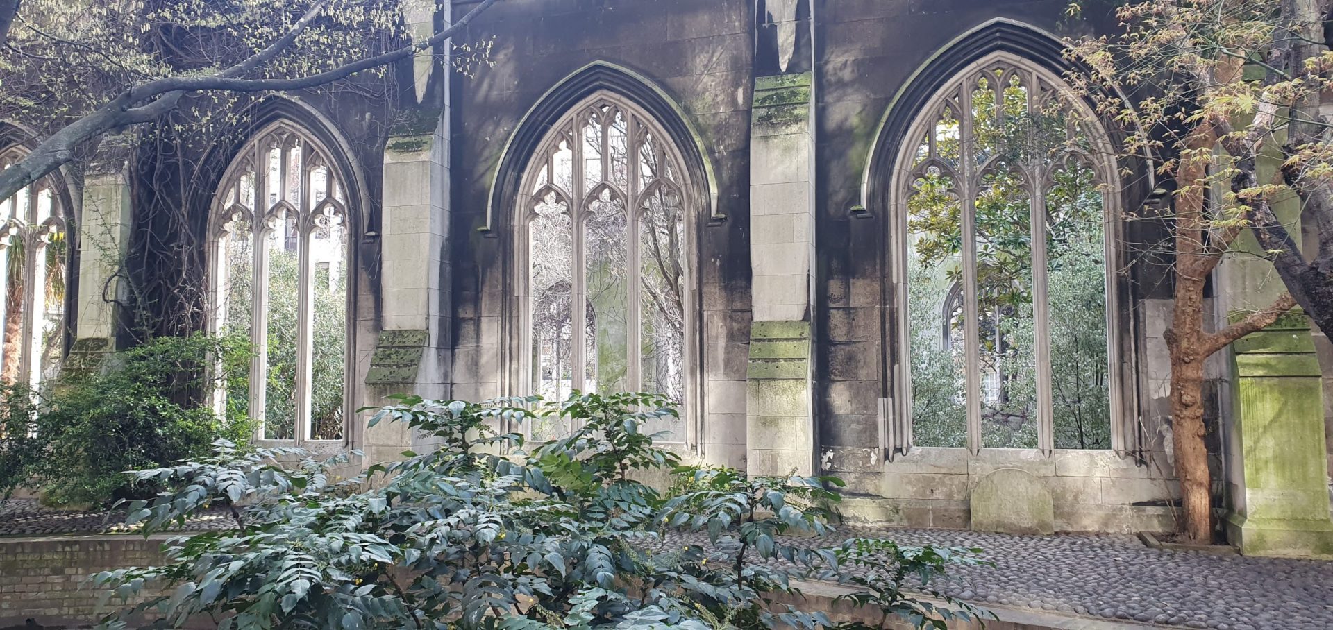 St Dunstan in the East Church Garden, un lugar no tan conocido o al menos para nosotros y verdaderamente único muy cerca del Sky Garden de camino hacia la Torre de Londres. La iglesia sufrió graves daños en el bombardeo de 1941, en la Segunda Guerra Mundial y se decidió no reconstruir St Dunstan. En 1967, la ciudad de Londres decidió convertir los restos en un jardín público, que se inauguró en 1971, un lugar que seguro os sorprenderá.