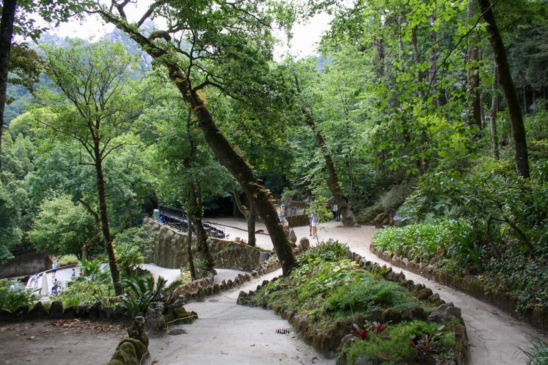 Pero si el Castillo o Palacio es impresionante, el parque donde se encuentra no lo es menos, nosotros decidimos bajar a la vuelta por el parque y nos quedamos encantados, Quizás pueda parecer un bosque salvaje, pero nada más lejos de la realidad, hay caminos que atraviesan el bosque y te guían hasta los elementos más importantes, inmensos peñascos que parecen de granito recubiertos de musgo, miradores, estanques y hasta un bonito jardín de helechos, ¡no os lo podéis perder!