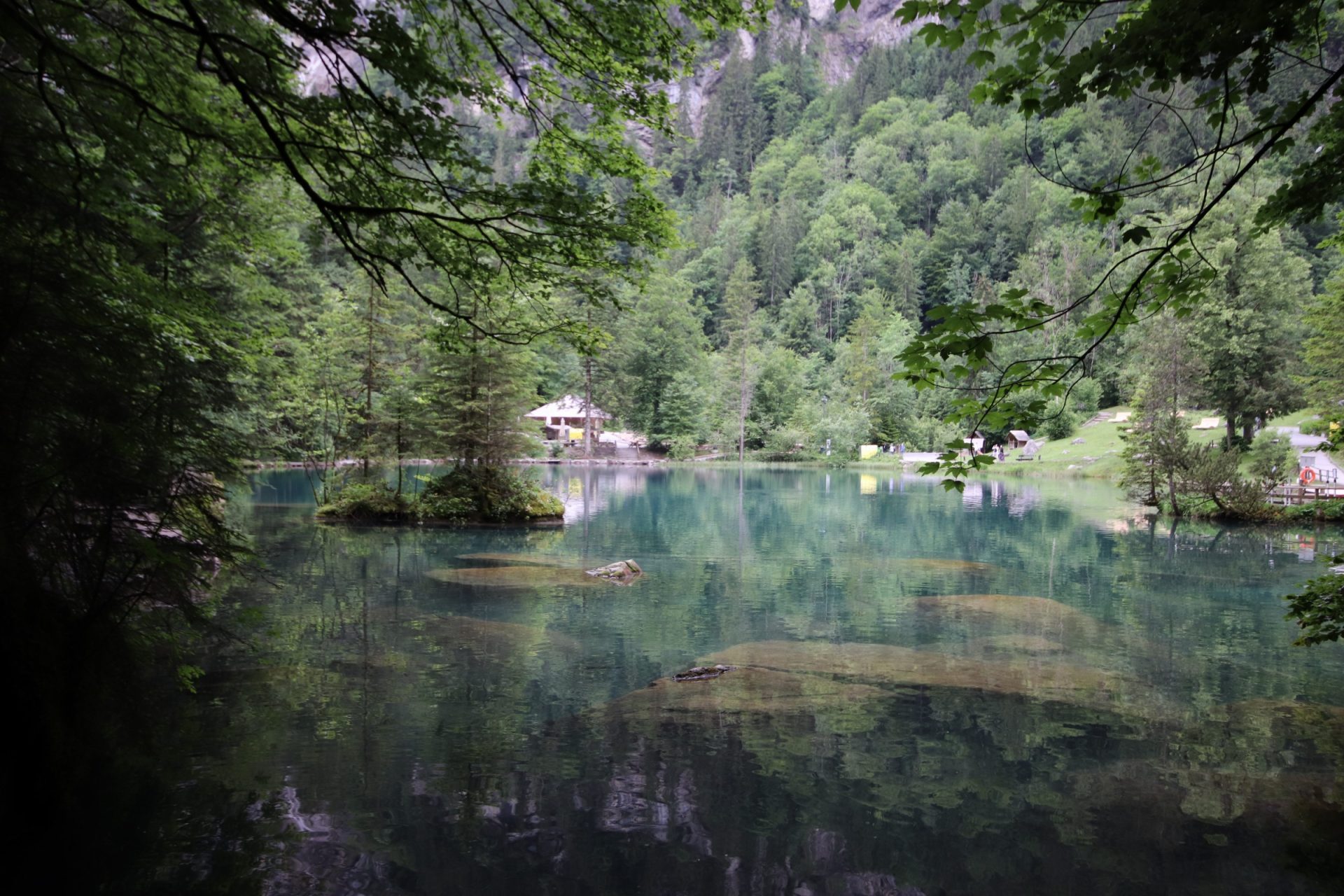 El día aún no había terminado, nos quedaba una última parada, un lugar que veíamos una y mil veces en Instagram y no nos queríamos perder, no es otro sitio que el Blausee. Llegamos tarde, pero aquí había unas máquinas expendedoras para sacar las entradas, si aquí también hay que pagar para entrar, y aunque dicen que está muy masificado y ha perdido su encanto, nosotros tuvimos suerte, estábamos casi solos, quizás porque cuando viajamos a Suiza aún persistía la pandemia o solo fue porque llegamos a ultimísima hora.