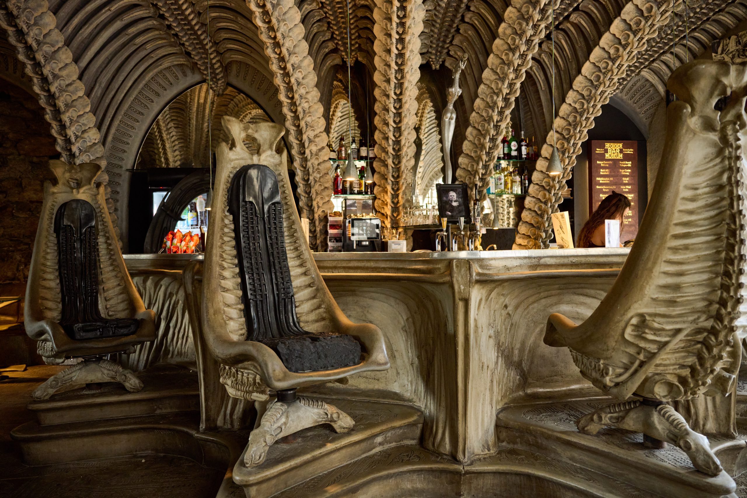 Por si alguno no lo sabe, nosotros no lo conocíamos, este pueblo guarda una curiosa sorpresa, hay un museo dedicado al padre de Alíen y justo enfrente un bar con una decoración sorprendente ambientada en la película y con el nombre de su creador HR Giger, es super original. Nosotros entramos solo para tomar un refresco y poder verlo, queríamos ir a un último lugar antes de marcharnos al hotel.