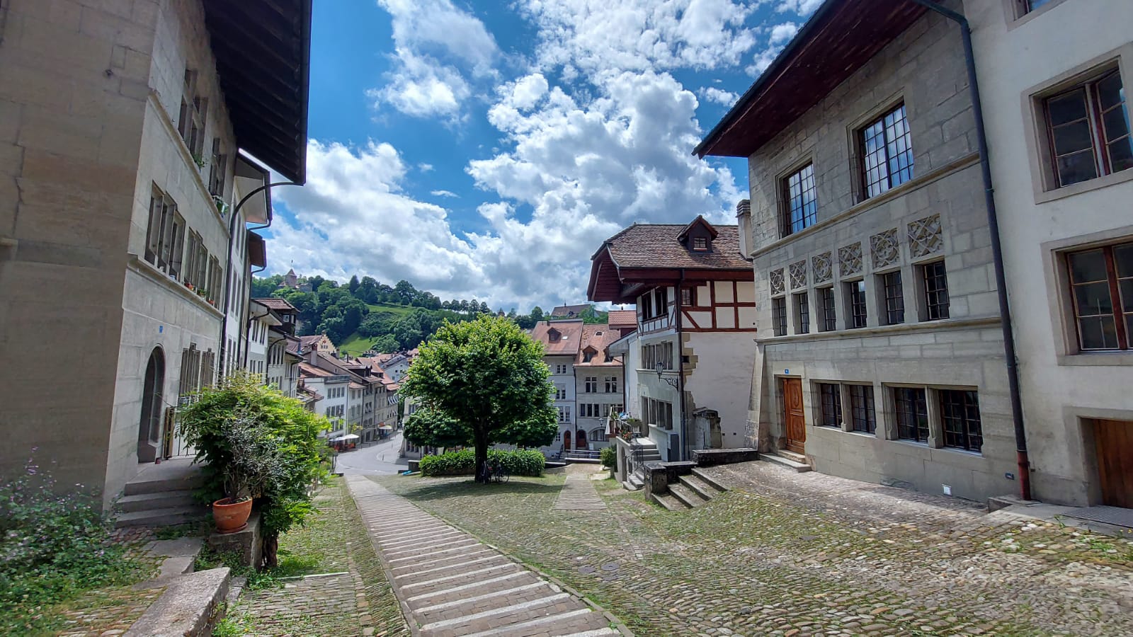 Friburgo situada en lo más alto de un promontorio , pequeña ciudad medieval que se encuentra en un enclave precioso de medía montaña, abrazada por el serpenteante río Sarine y rodeada de frondosos bosques fue nuestra primera parada. El casco antiguo está lleno de bonitas y cuidadas calles adoquinadas, y edificios históricos. Uno de los más destacados es la Catedral de San Nicolás, obra maestra del gótico con un impresionante rosetón, su famosa torre campanario de más de 70 metros de altura se puede ver desde casi cualquier punto de la ciudad.