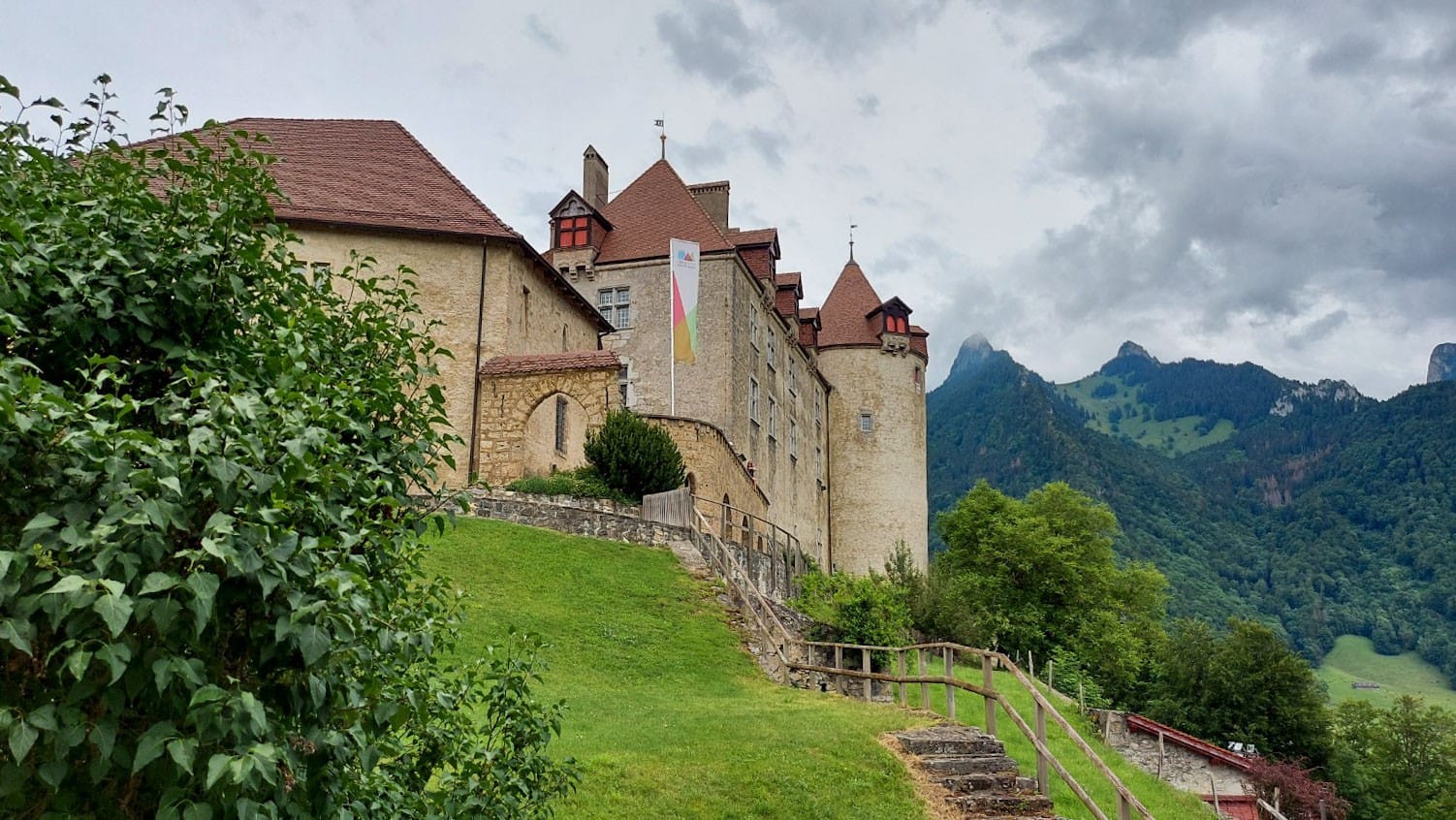 El día nos deparaba más sorpresas, Gruyères nos encantó, el pueblo se encuentra situado en una colina con unas vistas impresionantes, al pie de esta colina hay un aparcamiento donde dejar el coche o caravana y después de una pequeña caminata con una ligera pendiente accedes directamente a la calle principal. En esta bonita calle empedrada encontrarás terrazas de restaurantes y tiendas donde comprar los famosos quesos y productos de la zona, además de cómo no souvenirs. Al final de la misma, en un extremo del pequeño pueblo está el Castillo.